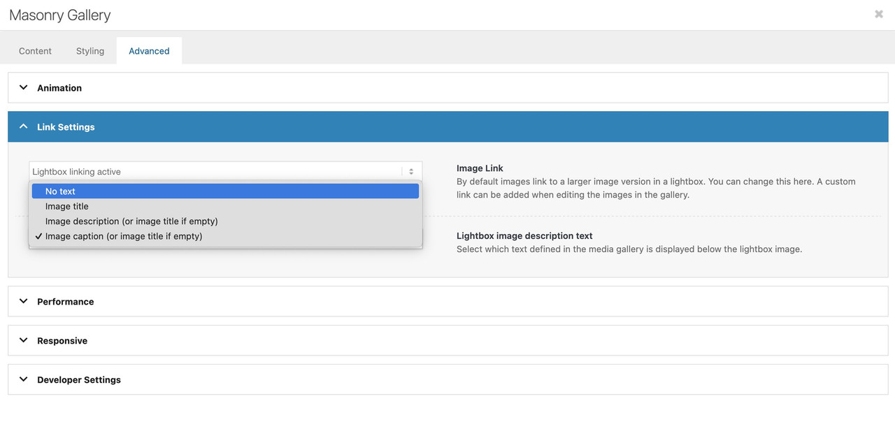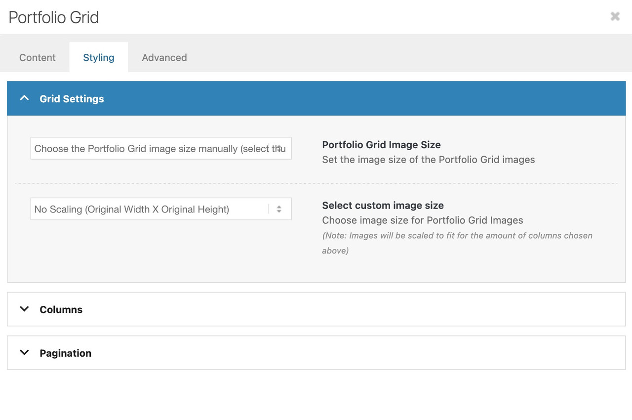 To do this, you must first select “Select the grid image size manually” under “Portfolio Grid Image Size”—a second drop-down menu will then open where you can specify the grid image size.Do you like to change something on the lightbox images – or the bottom-bar text?