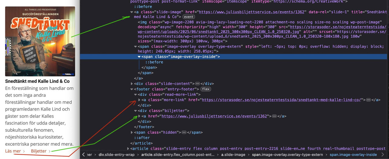 so if you only like to link if there are biljetservice links on the images above the titles – then take snippet two from this link