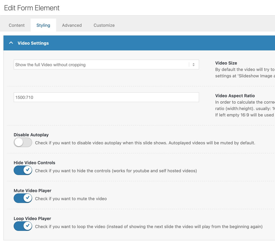 the only thing you had to know is the aspect ratio of your video ( in your case 1500:710 ) and this is not 16/9